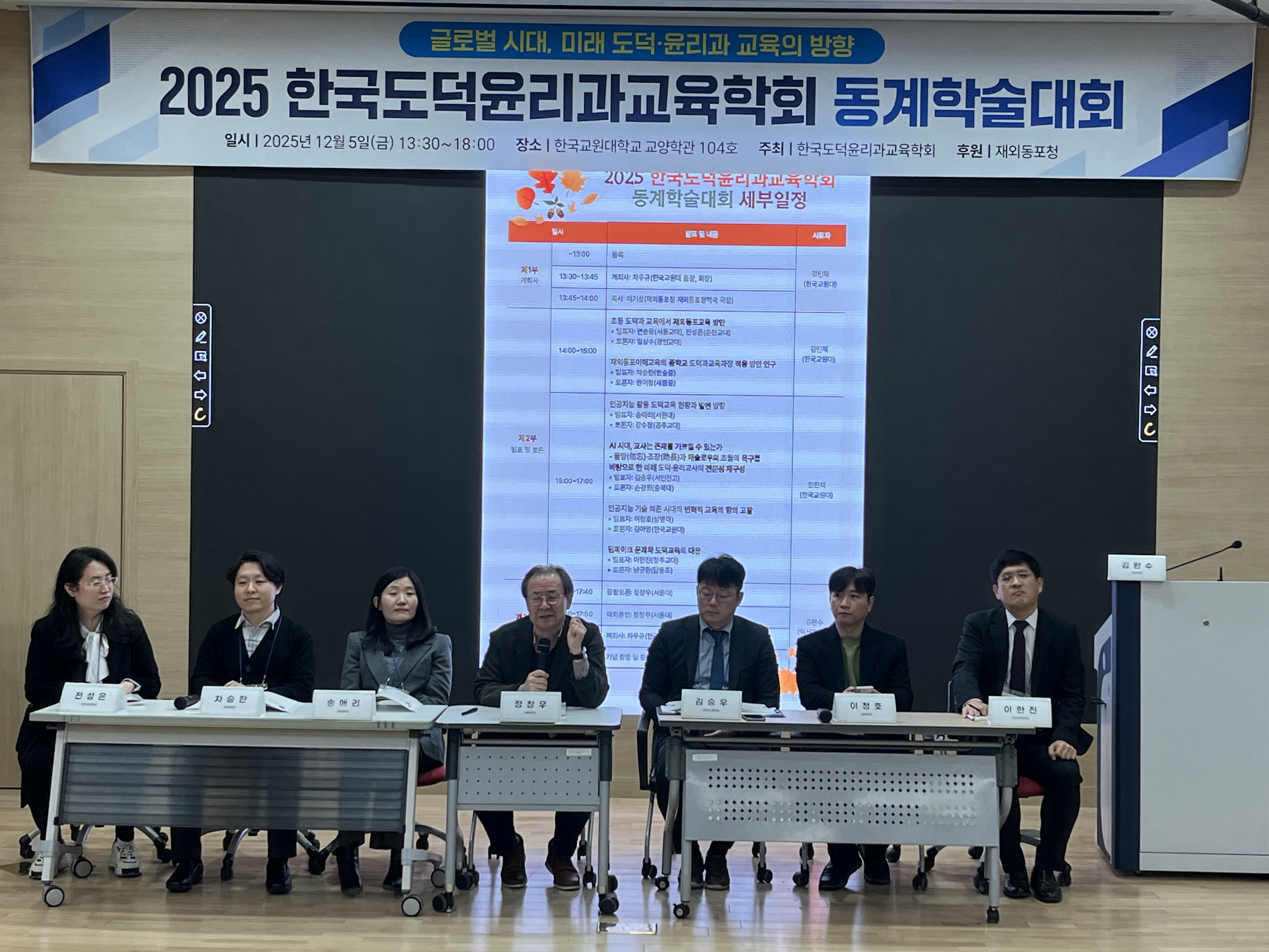 이번 2025 동계학술대회에서는 '글로벌 시대, 미래 도덕윤리과교육의 새로운 방향'이라는 주제로 한국교원대학교 교양학관에서 개최하였습니다. 많은 분들이 참여해주셔서 재외동포교육 및 새로운 도덕과 교육의 방향에 관한 의미있는 자리가 되었습니다. 앞으로도 본회 학술대회에 많은 참여 부탁 드리겠습니다.