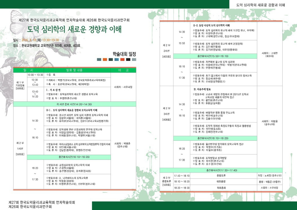 2. 장소: 한국교원대학교 교육연구관 509, 408, 403호